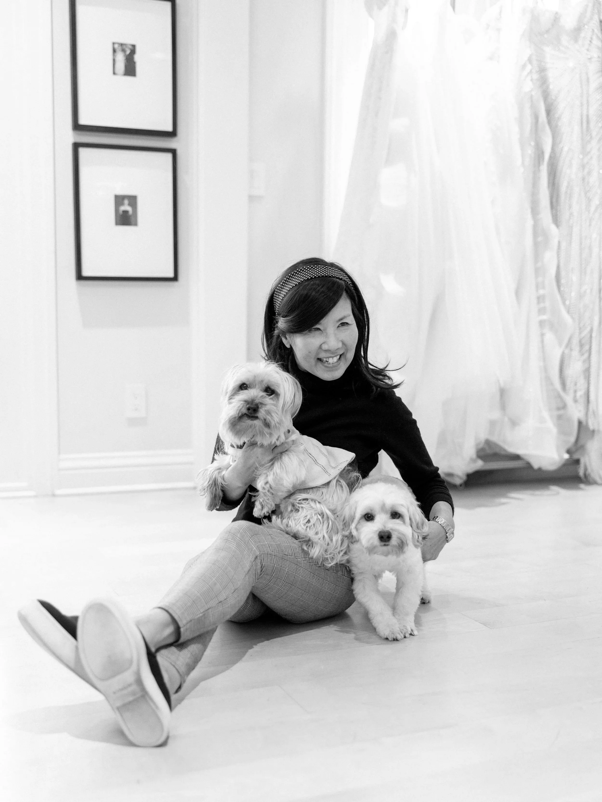 Upon entering the bridal studio, you will immediately sense her exquisite taste and serene style. A wide selection of made to order, unique and modern-yet-classical gowns with distinctive details, luxurious fabrications and flawless workmanship are shown throughout the expansive and bright spaces.